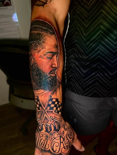 Family Portrait tattoo, Nipsey Hussle TMC and iconic figure tattoo, animal tattoo, roses floral tattoo, fineline grewash tattoo, Filipino Tattoo ( batok) Visayan and Kalinga tribal art in Brisbane, Gold Coast and Sydney Australia...